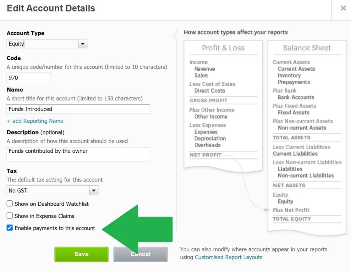 Secondly you could photograph and email the receipt into Xero to create a draft bill. You can then approve the bill, scroll down the bottom and mark it as paid, using "Funds Introduced" as the account being paid from, rather than being paid from a bank account. Tip: if "Funds Introduced" does not appear as an option, just go into the General Ledger and edit Funds Introduced to "Enable Payments To This Account". It’s a tick box you’ll see.